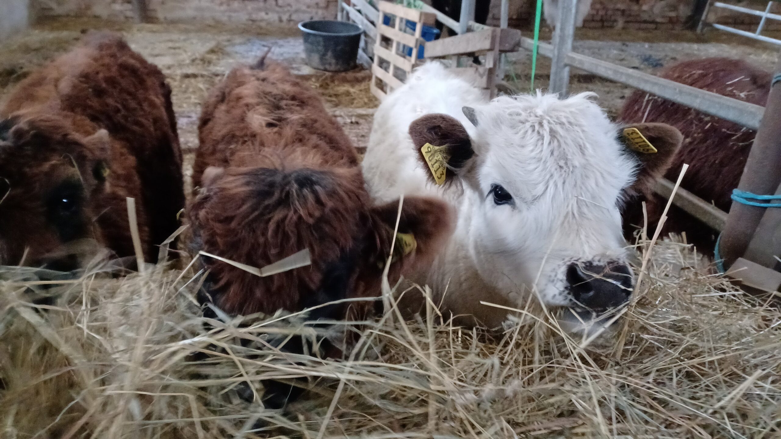 Einen wahren Glückswurf haben wir im April und Mai 2025 verzeichnen dürfen - unser Miniatur Galloway Bulle Idefix hat uns 4 zuckersüße weiße Mini Galloway Kuhkälber beschert. Wir werden mit den 4 Mädels einen weiteren Grundstein für unserer Mini- und Liliputzucht legen.