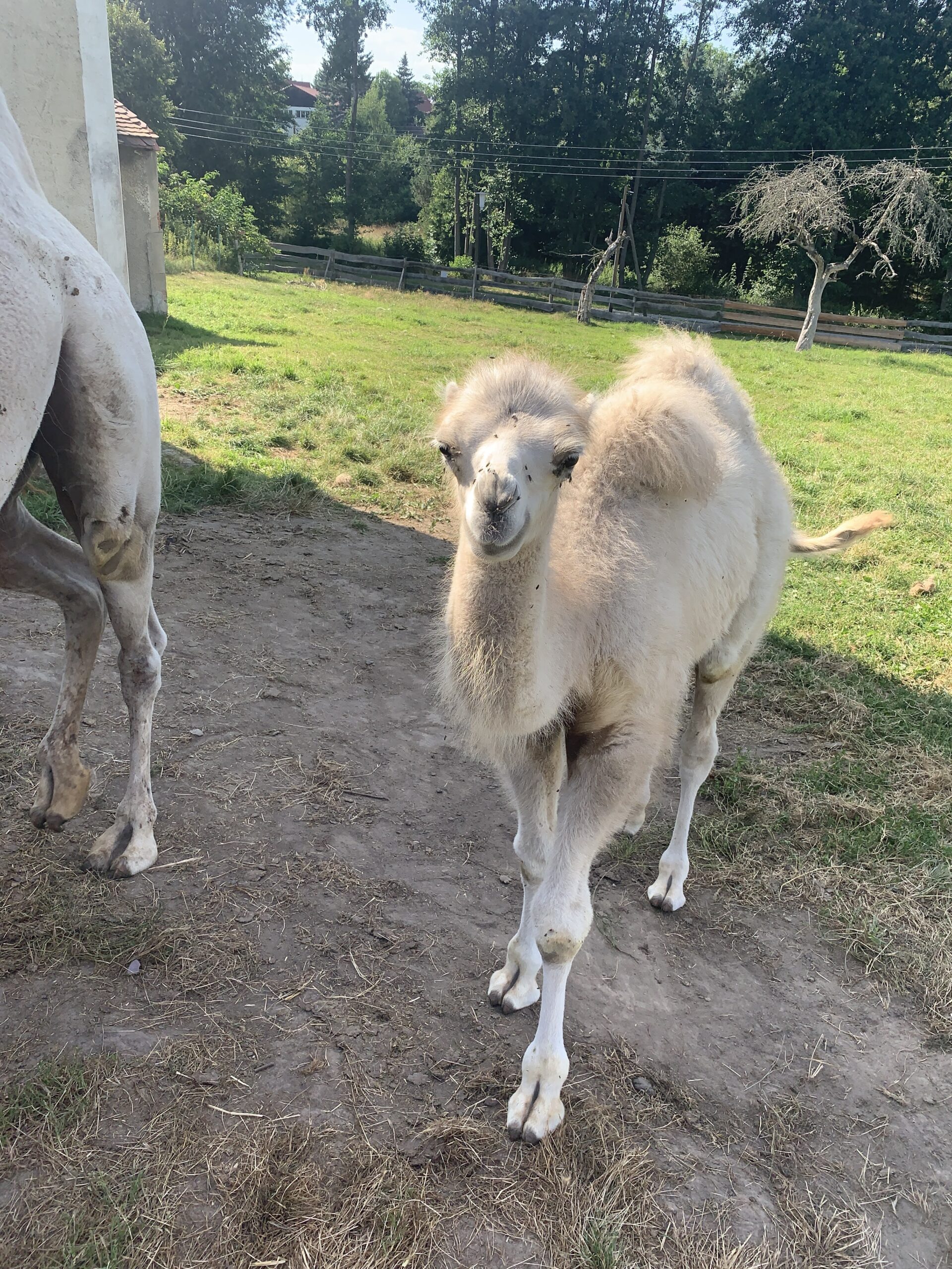 Im Juli 2022 purzelte unser erstes weißes Kamelfohlen auf die Welt - gerechnet hatten wir mit braun. Umso knuffiger kommt der kleine Djinn daher.