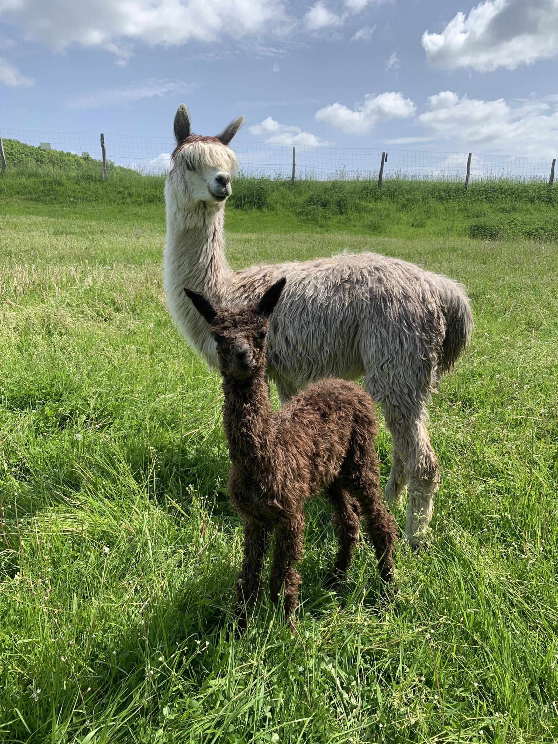 Am 02.06.2022 durften wir dabei sein, als unsere Alpakastute Andromeda das erste Stutfohlen in diesem Jahr zur Welt brachte. Es war eine Geburt wie im Bilderbuch. Alles lief problemlos ab und die kleine Artemis kam schnell auf die Beine. Nun flitzt der Silberpfeil über die Stutenweide, natürlich immer unter Aufsicht von Andromeda, die sich als liebevolle Mutter zeigt. Auch die anderen Lama- und Alpakastuten haben ein Auge auf den Nachwuchs.