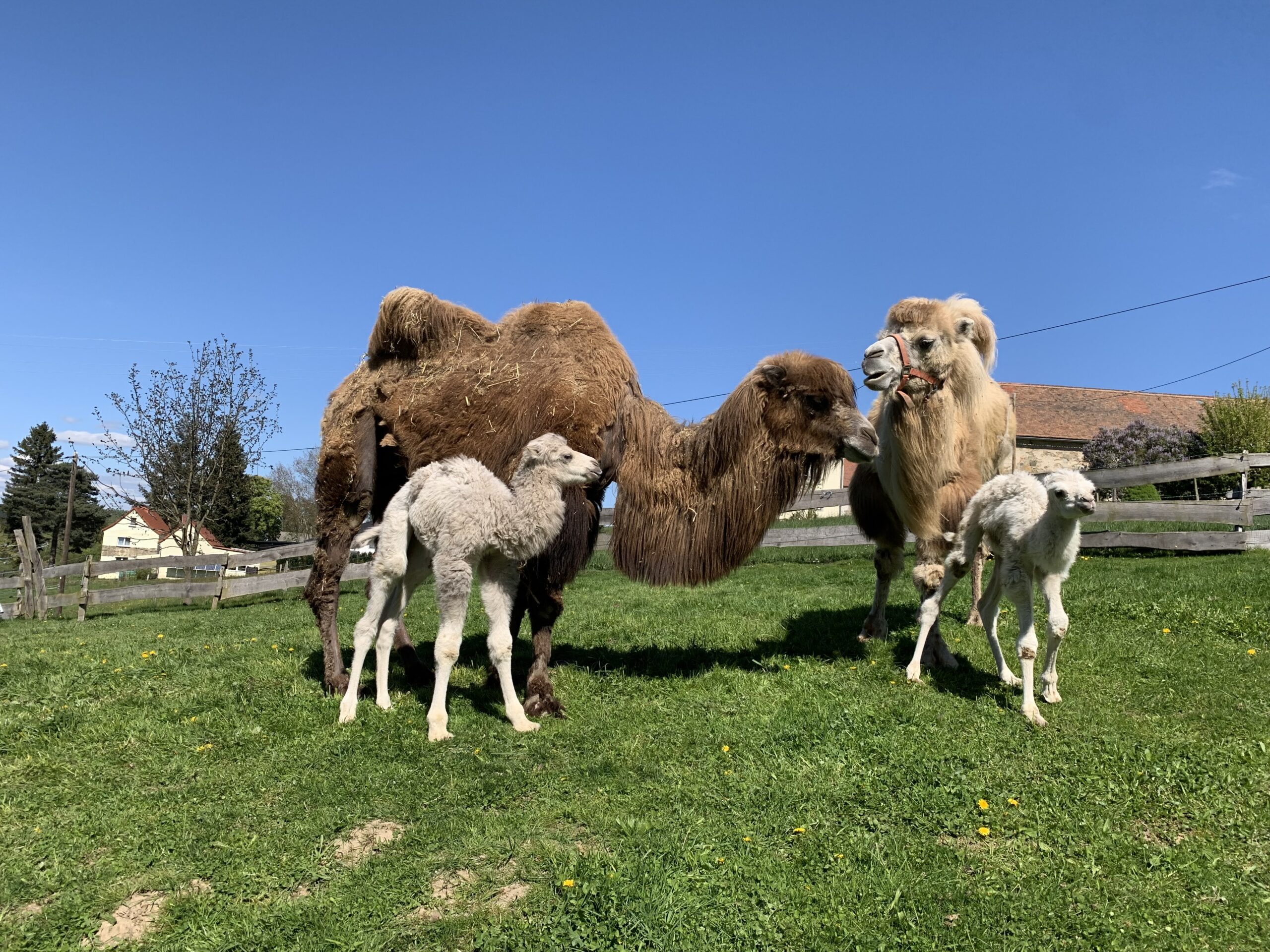 Wir freuten uns riesig über 2 unkomplizierte Geburten bei unseren Trampeltieren Namu und Saara. 2 schneeweiße bezaubernde Stutfohlen erblickten im April 2024 das Licht der Welt.
